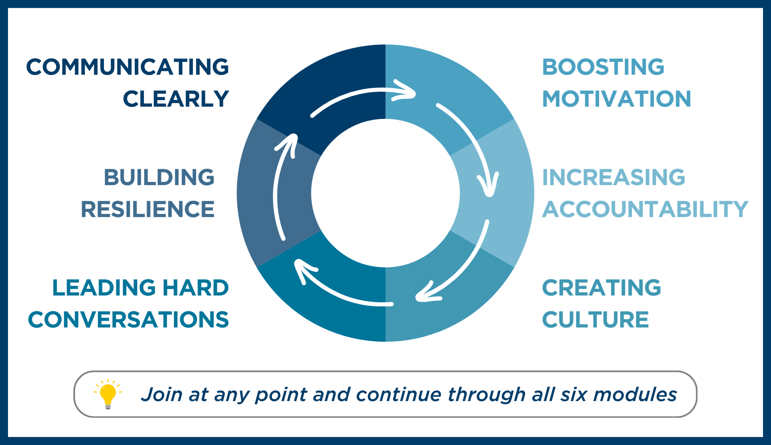 Throughout the 6-module program, a leadership expert guides participants step-by-step to develop the skills that high-performing leaders rely on.